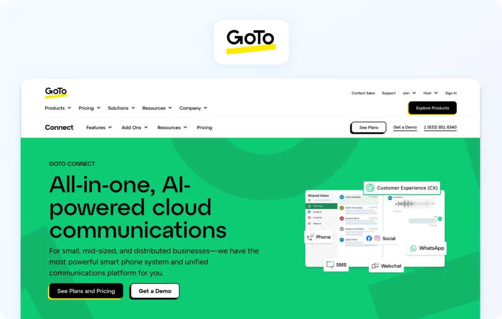 GoTo Connect combines the legacy of GoToMeeting (video) and Jive/GoToConnect (VoIP) into a unified communications platform with an optional contact center tier. You get business phone, video meetings, team messaging, and basic contact center features at price points that undercut most Nextiva competitors.
