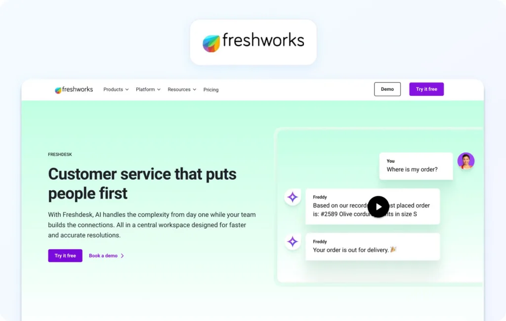 Freshdesk centralises support interactions in a cloud-based help desk platform that covers ticketing, automation, SLA management, and a knowledge base. It’s designed to help teams resolve customer issues efficiently across multiple channels.
